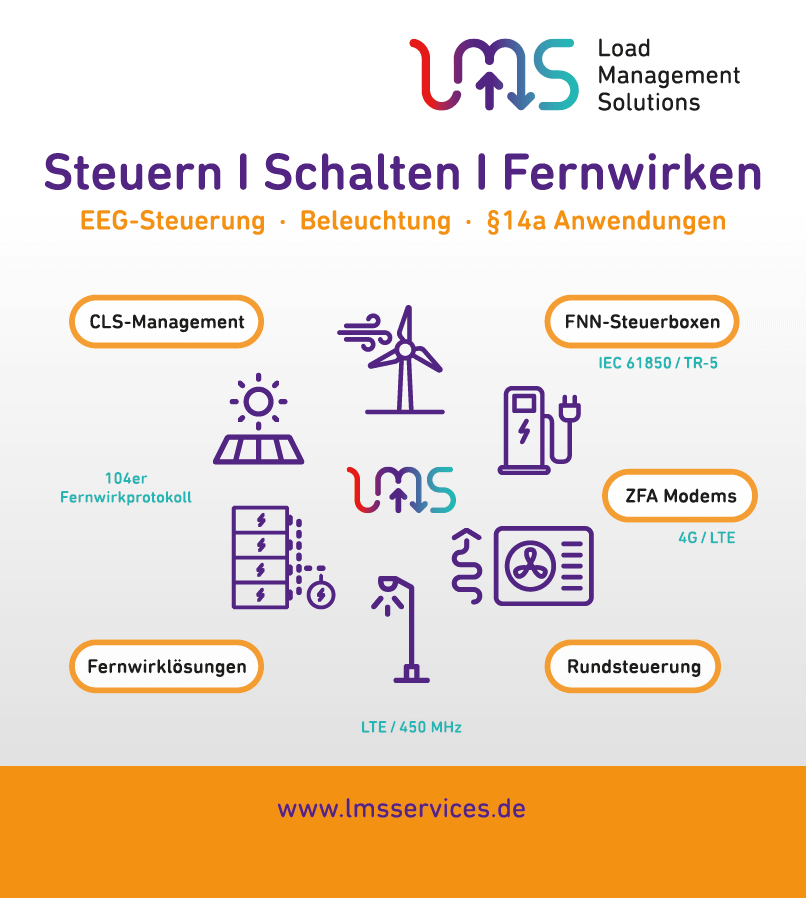 Parallel dazu bietet LMS Services auch kompakte Fernwirklösungen über GPRS, LTE und 450 MHz sowie Steuerboxen nach FNN, die Schaltaufgaben im Zusammenspiel mit dem SMGW und dem CLS Management übernehmen werden.